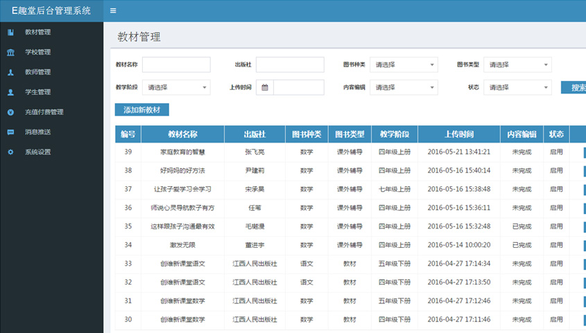 - 教材管理 管理平臺教材信息,采用圖片掃描、上傳、編輯對書本進行錄入